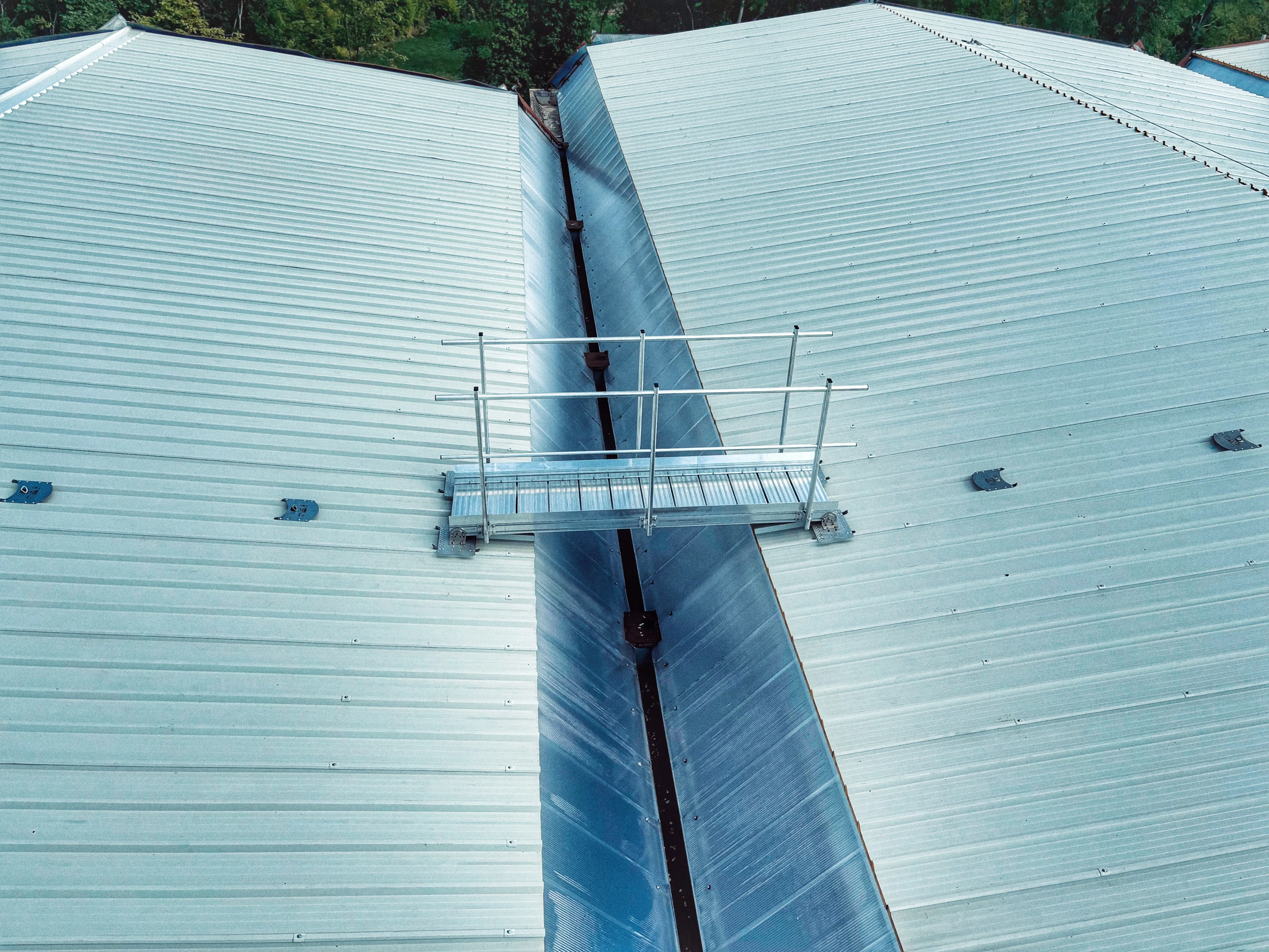 Linee vita orizzontali e passerelle su copertura in lamiera di 2.000 mq. Installazione completata in 5 giorni lavorativi con documentazione SMART.